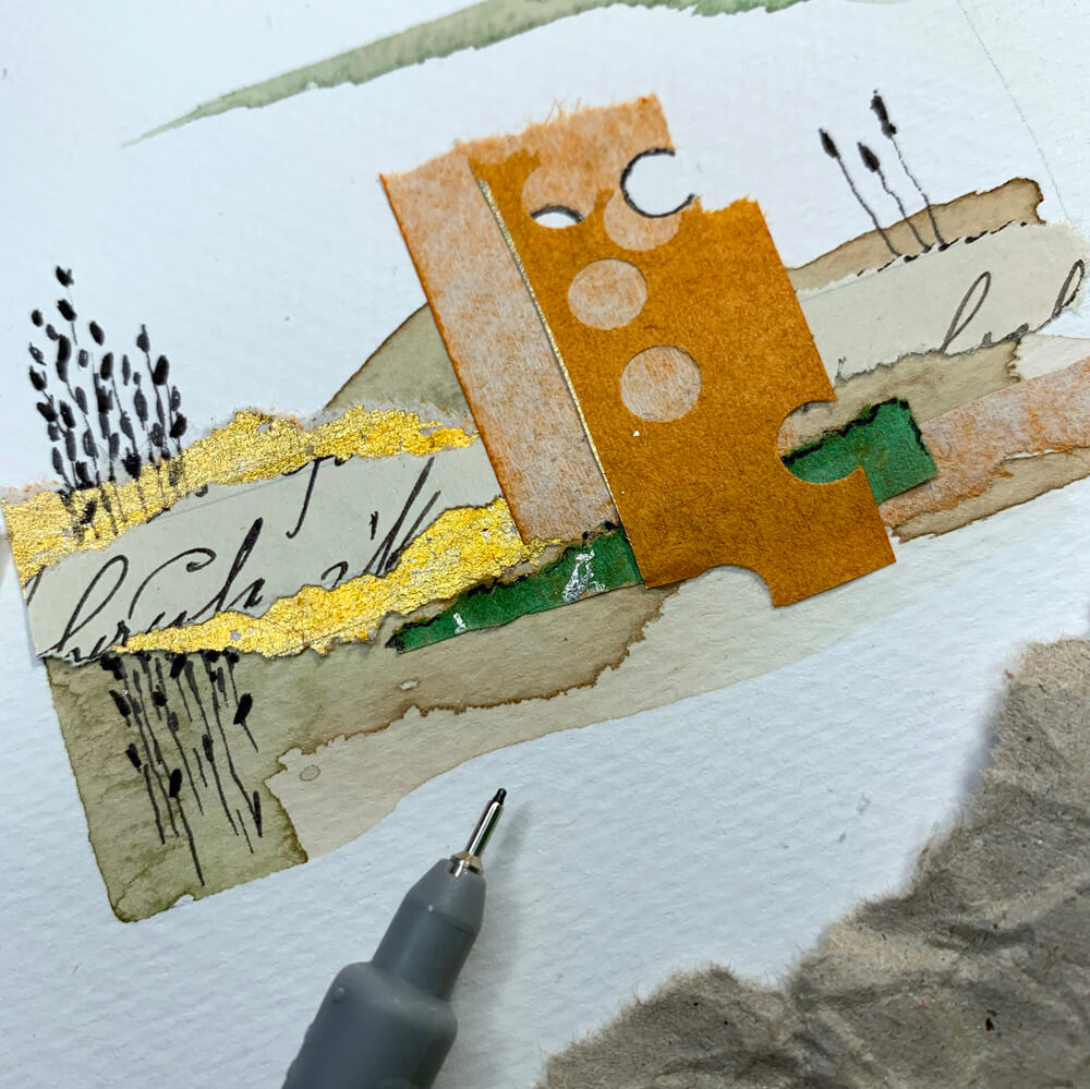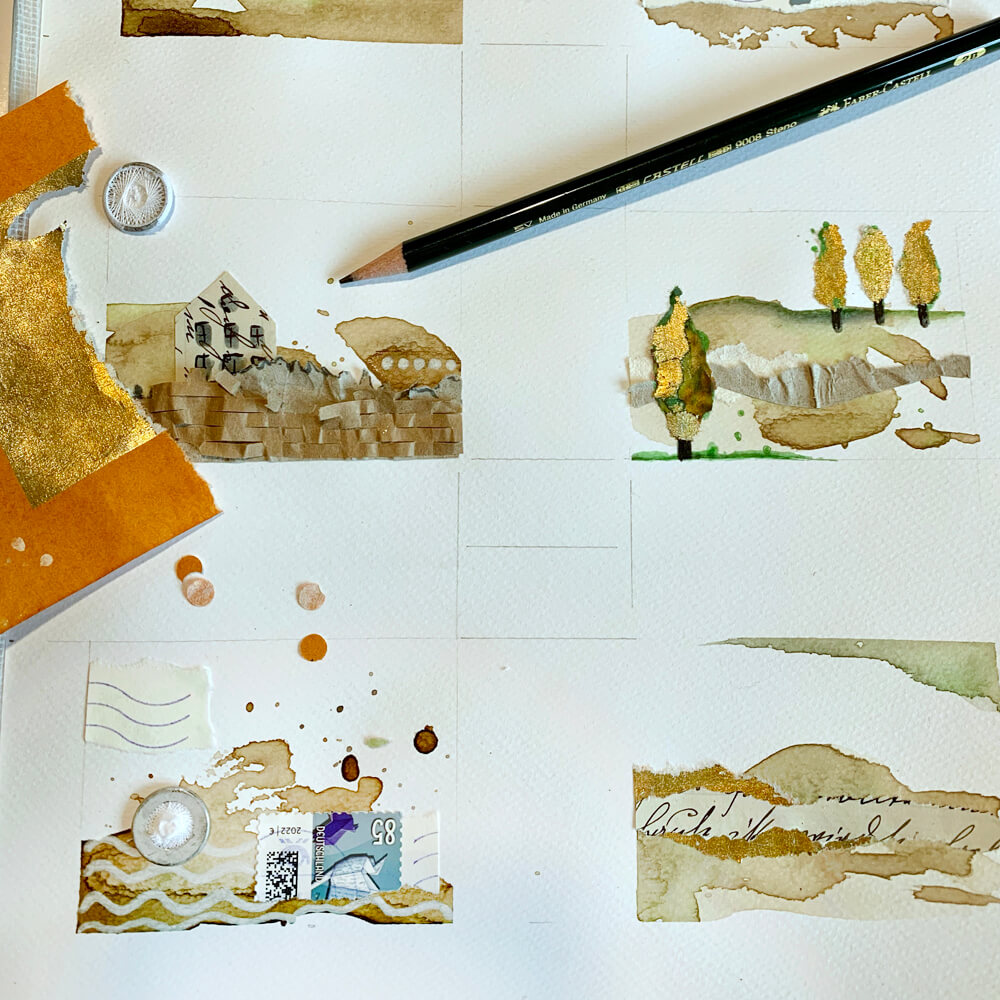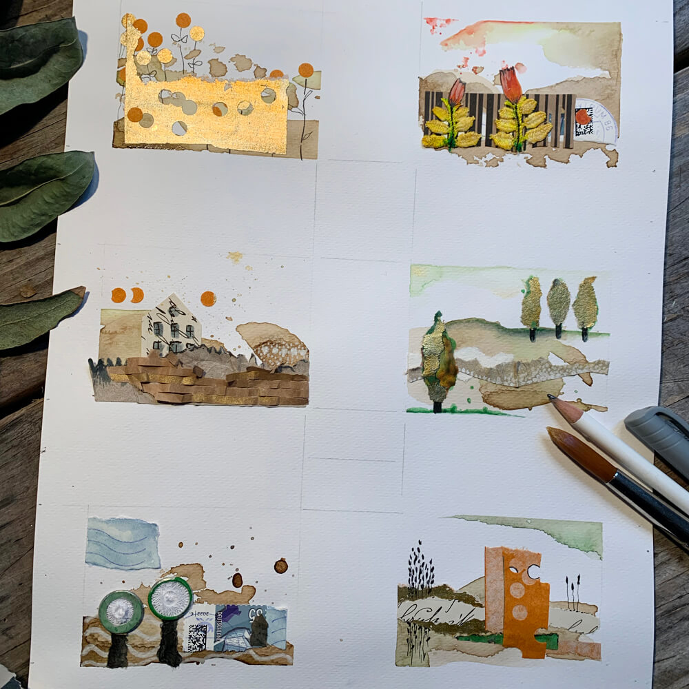 Aquarell & Collage. Landschaft im Mix.