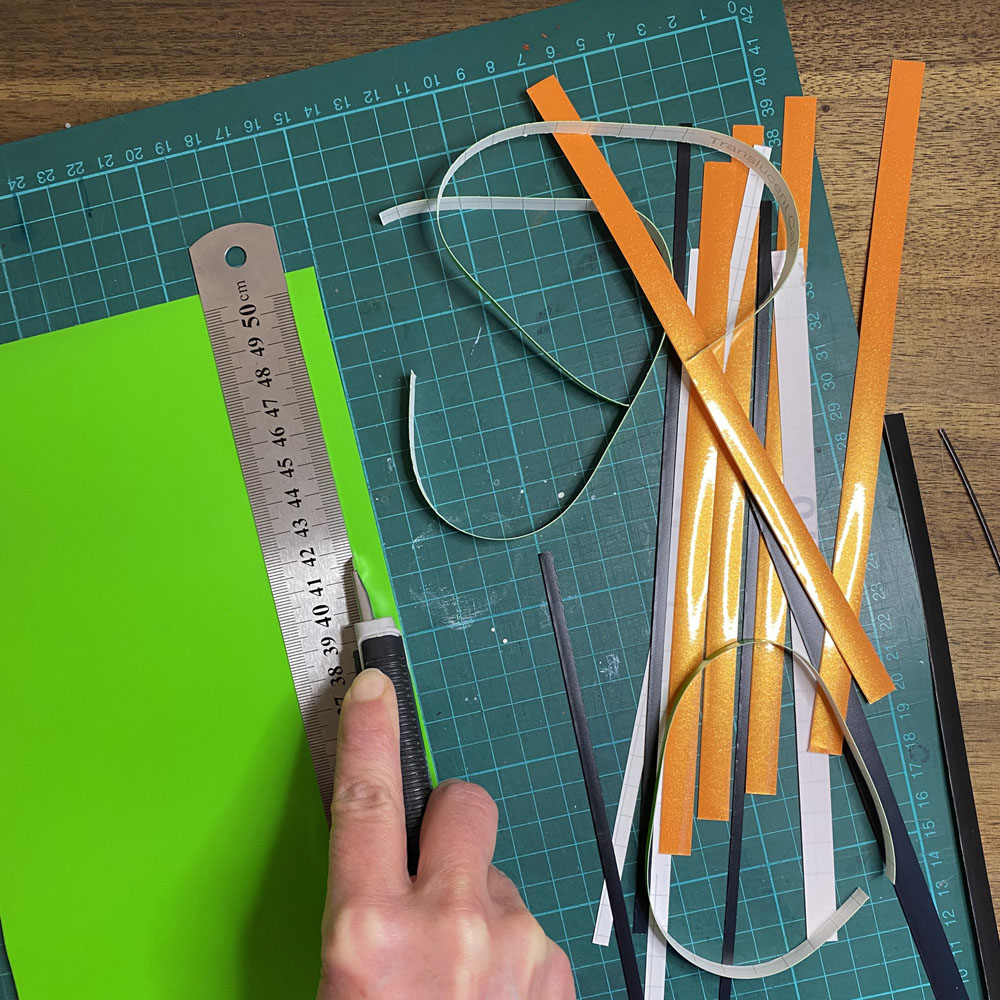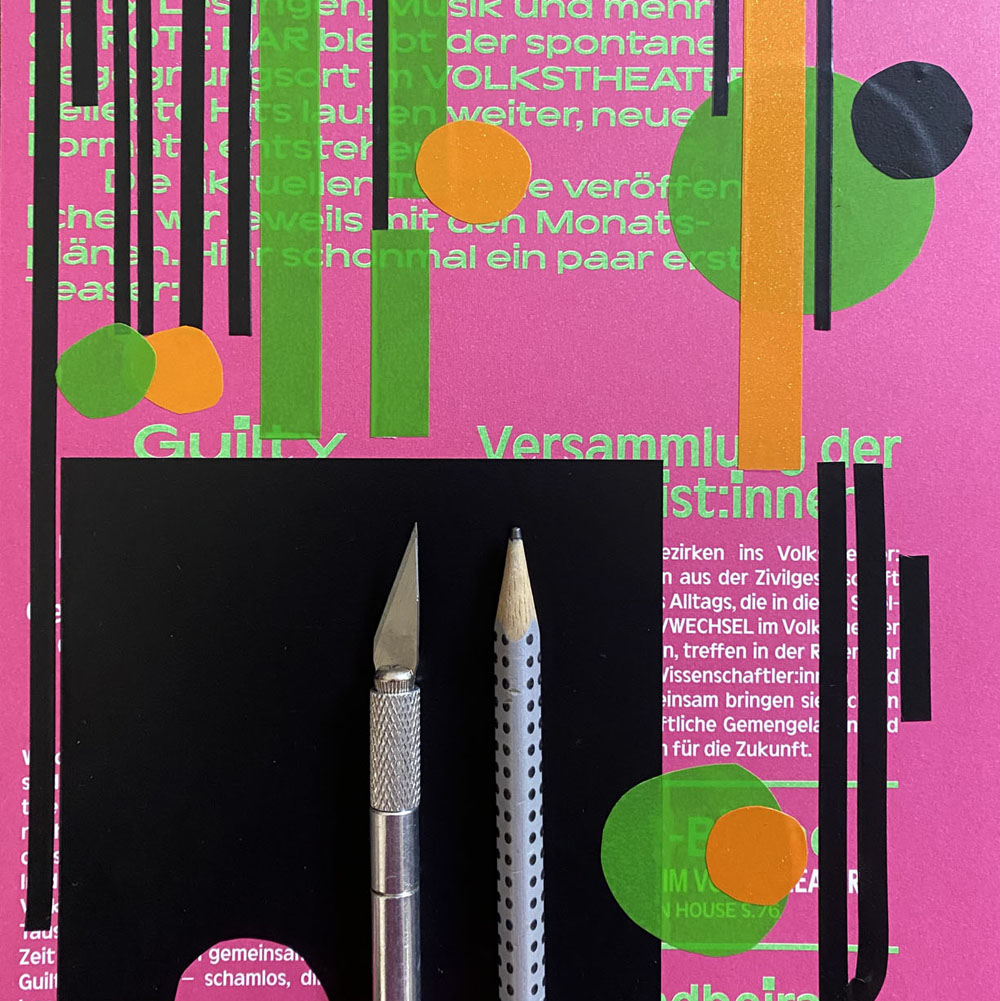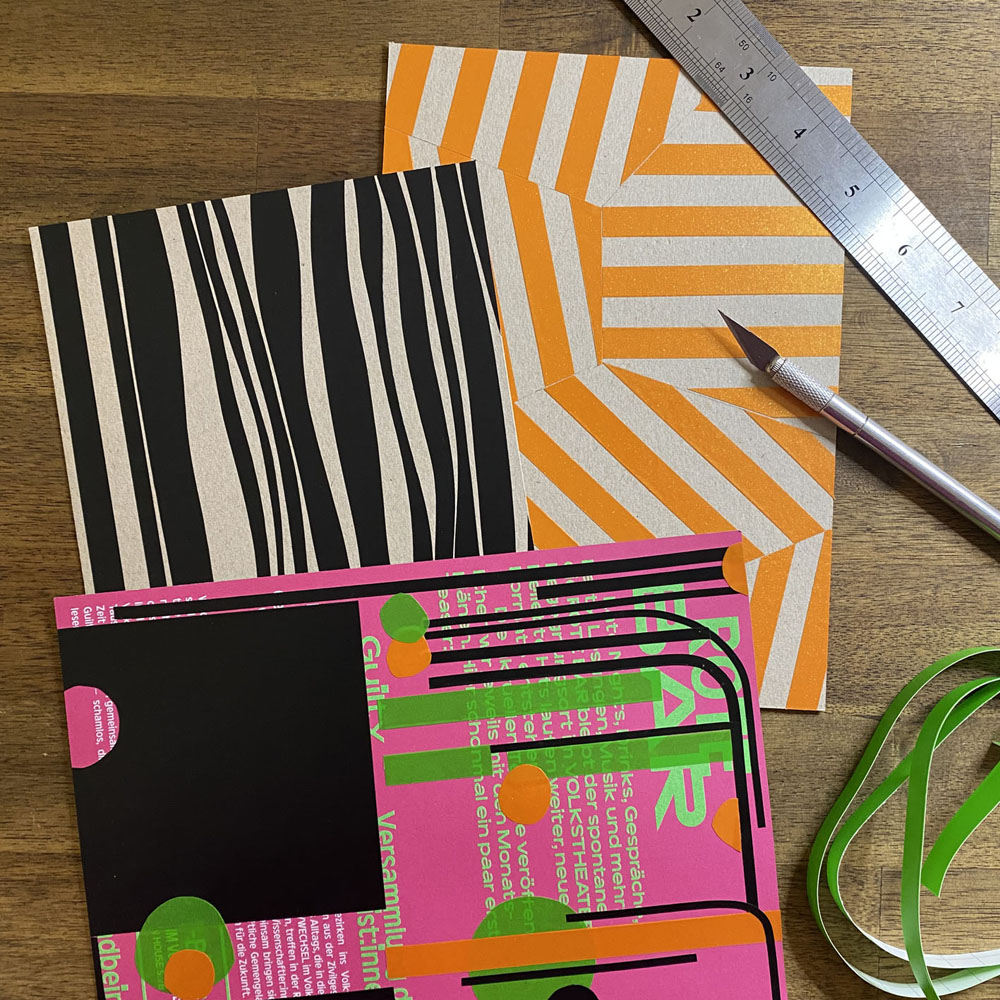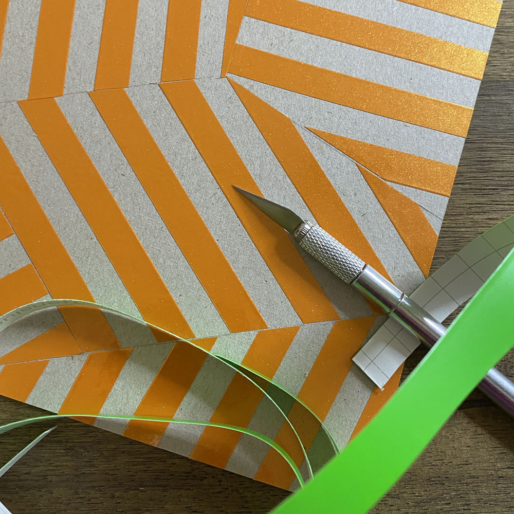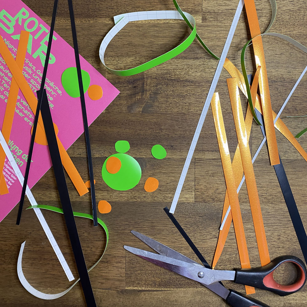 Inspiriert von Thomas Weils Arbeiten kreieren wir ornamentale Motive. Wir toben uns aus mit Folienstreifen, bunten Klebefolienausschnitte und Klebebändern!